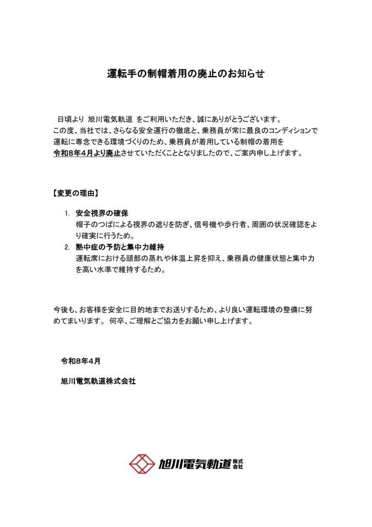 運転手の制帽着用の廃止について
